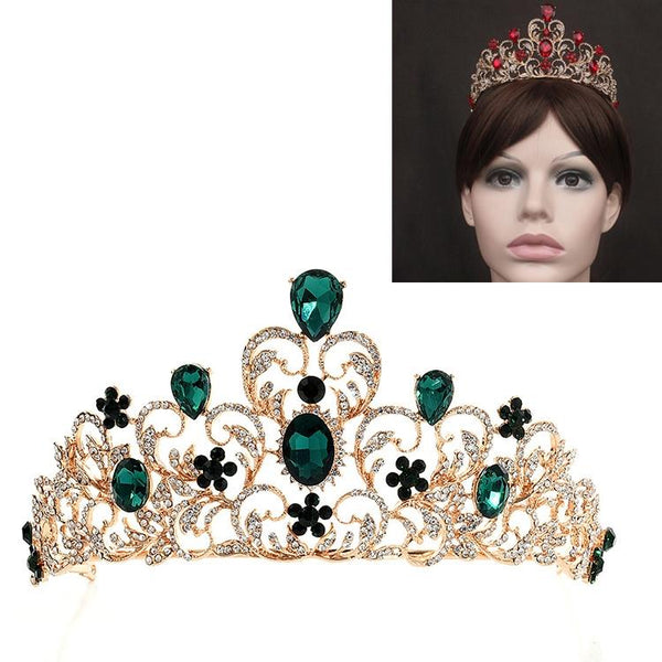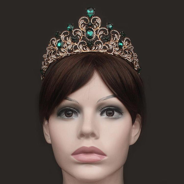 Crystal Wedding Crown Bride Crown Headband Accessories Hair Jewelry Ornaments(Green)