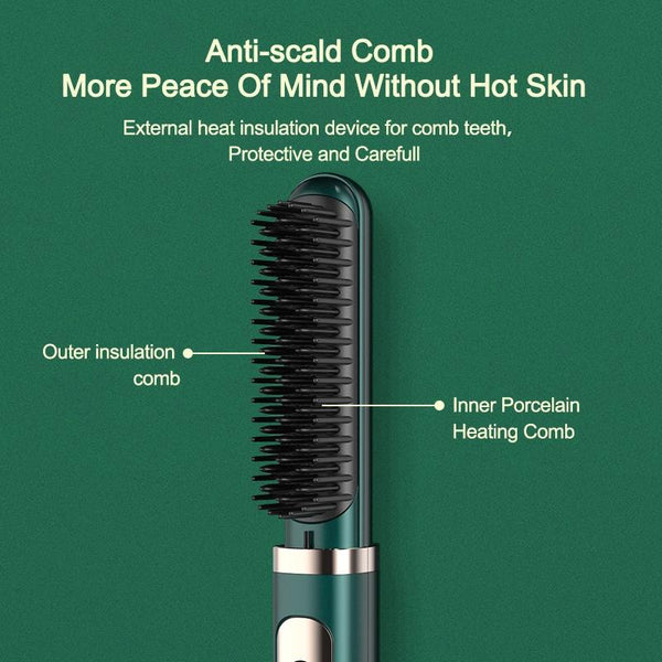 Curling And Straightening Dual-Purpose Negative Ion Automatic Constant Temperature Hair Straightening Comb, Specification:US Plug(Avocado Color)