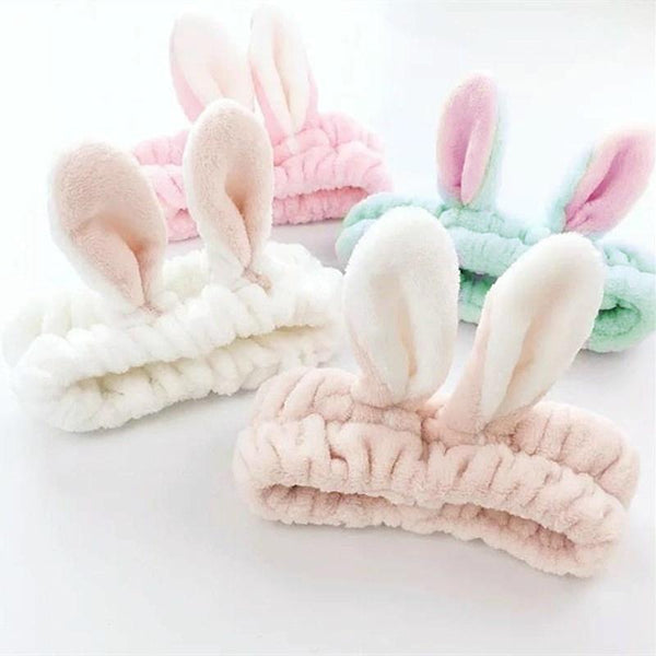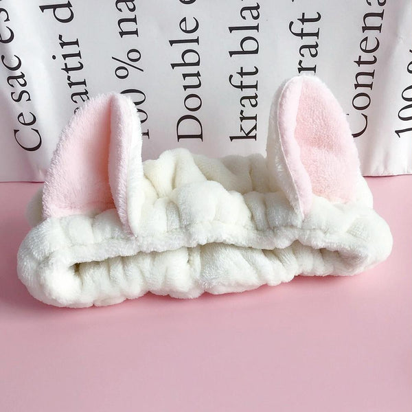 Cute Elastic Cat Ears Headbands Women Girls Makeup Face Washing Headband Hairdo Facial Mask Headwrap Hairband Hair Accessory(Beige)