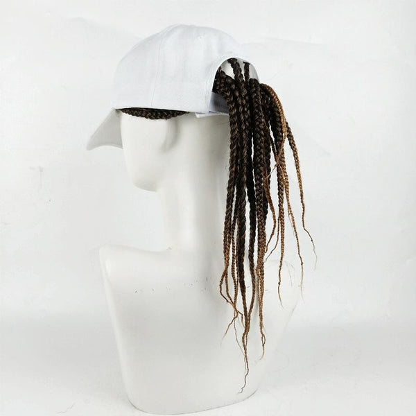 Dreadlocks Wig Hat One-piece Headgear for Men and Women, Style: White Cap(Light Brown Braid About 35cm)