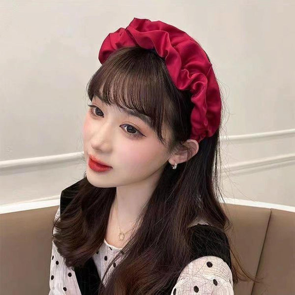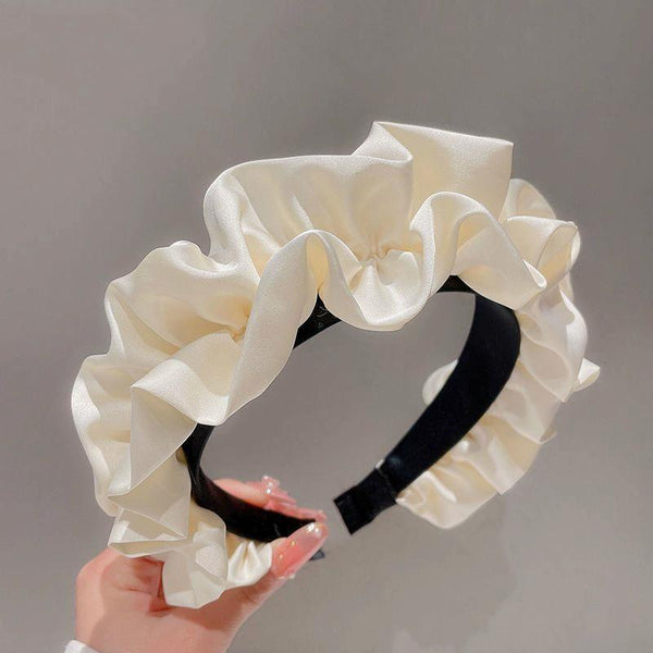 Elegant Wide-Brimmed Pleated Hoops Satin Fabric Versatile Headband(Beige)