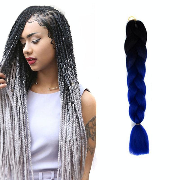 Fashion Color Gradient Individual Braid Wigs Chemical Fiber Big Braids, Length: 60cm(07 Black+Sapphire)