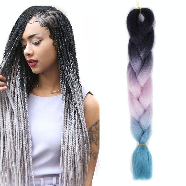Fashion Color Gradient Individual Braid Wigs Chemical Fiber Big Braids, Length: 60cm(28Black+Pink+Lake Blue)