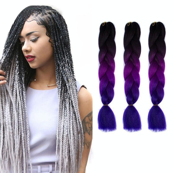 Fashion Color Gradient Individual Braid Wigs Chemical Fiber Big Braids, Length: 60cm(49 Black+Purple Red+Blue Purple)
