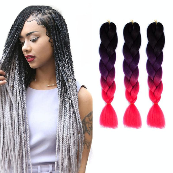 Fashion Color Gradient Individual Braid Wigs Chemical Fiber Big Braids, Length: 60cm(51 Black+Purple+Peach Red)