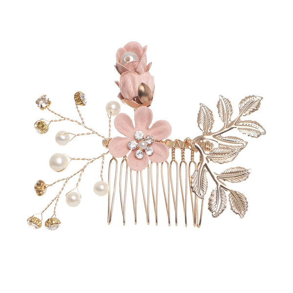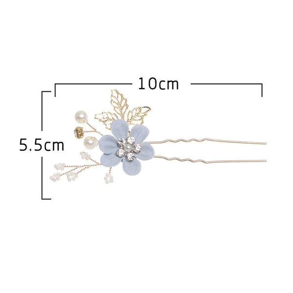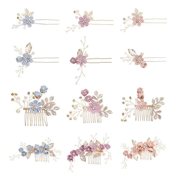 Fashion Flower Hair Combs Headdress Prom Bridal Wedding Hair Accessories Gold Leaves Hair Jewelry Hair Pins(Blue 1 flower)
