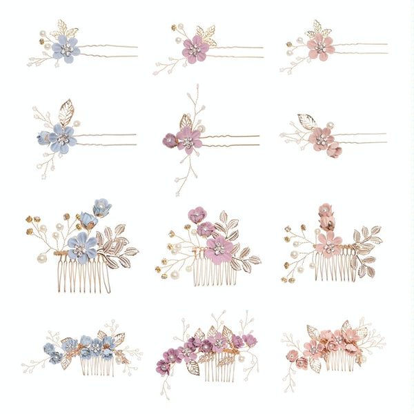 Fashion Flower Hair Combs Headdress Prom Bridal Wedding Hair Accessories Gold Leaves Hair Jewelry Hair Pins(Purple big size)