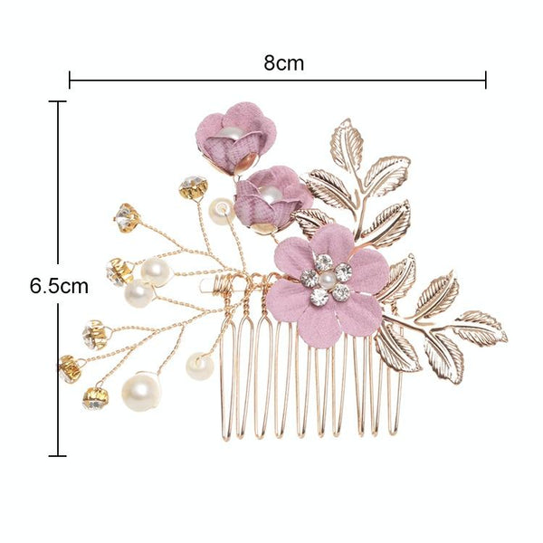 Fashion Flower Hair Combs Headdress Prom Bridal Wedding Hair Accessories Gold Leaves Hair Jewelry Hair Pins(Purple hair comb)