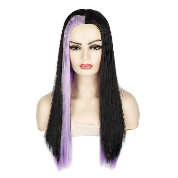 Fashion Medium Haircut Side Bangs Highlight Color Long Straight Wig(Black Light Purple)