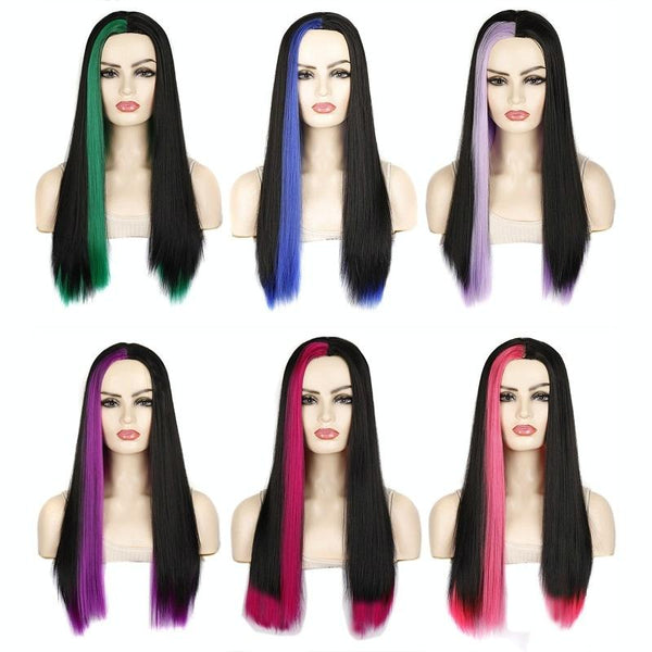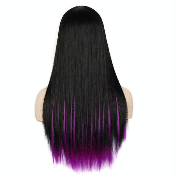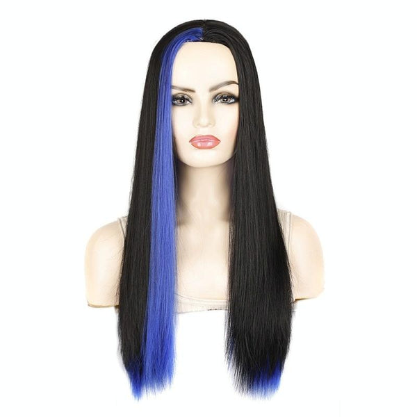 Fashion Medium Haircut Side Bangs Highlight Color Long Straight Wig(Black Royal Blue)