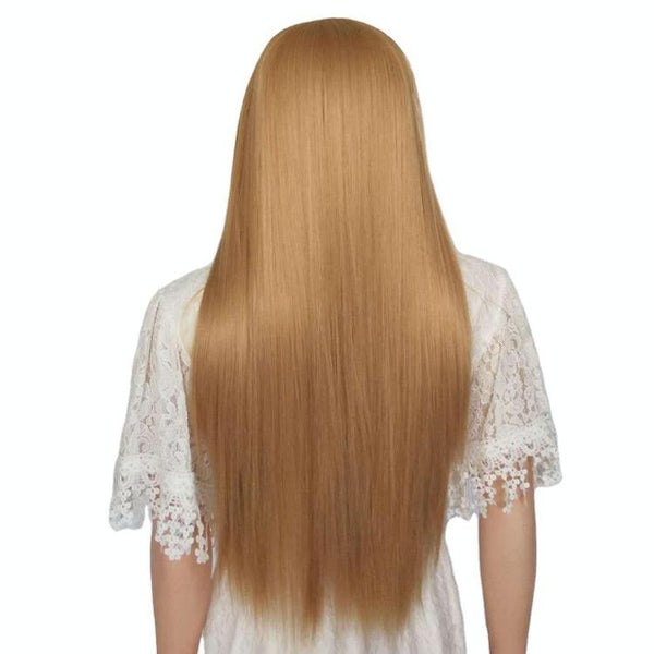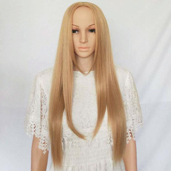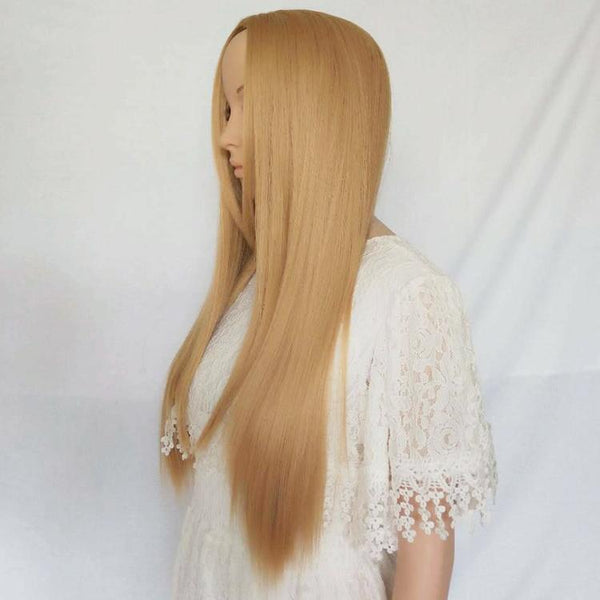 Female Mid-length Straight Hair Golden Rose Mesh Synthetic Wig