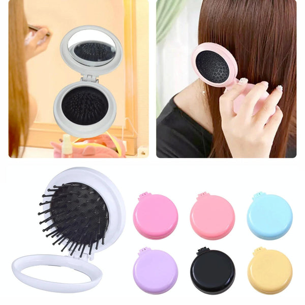 Folding Air Cushion Comb Portable 2 In 1 Comb wWith Mirror(Yellow)