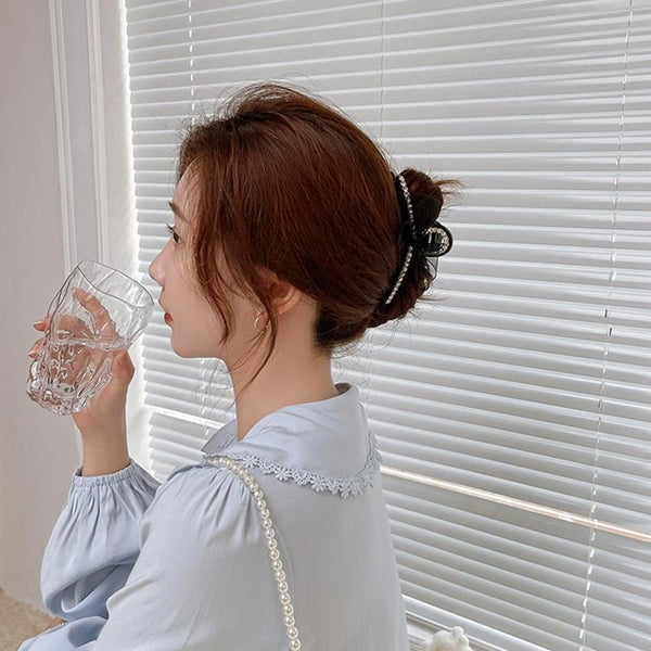 French Style Hairpin Gripper Mesh Lace Bowknot Rhinestone Hairpin(Champagne)