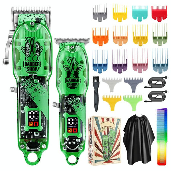Haircutter Set Transparent Body Oil Head Electric Hair Clipper Men Home Electric Pusher(Scissors Green)