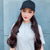 Hat Big Curve Wig One-piece Long Curly Chemical Fiber Headgear for Women(Dark Brown)