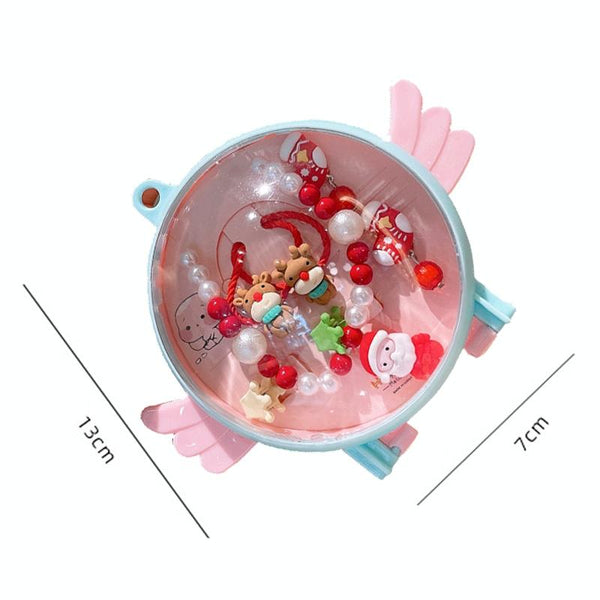 Kids Cute Cartoon Pendant Necklace Hair Accessories Gift Set, Style: Fish Tail Box Snowman