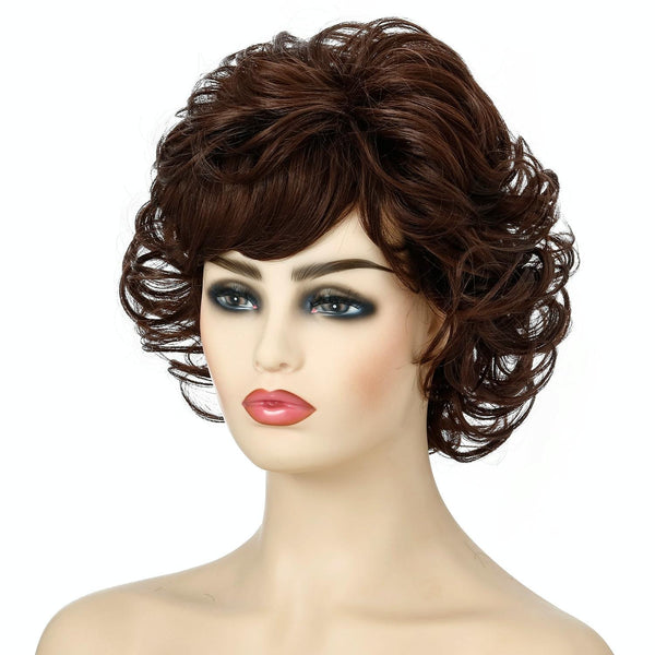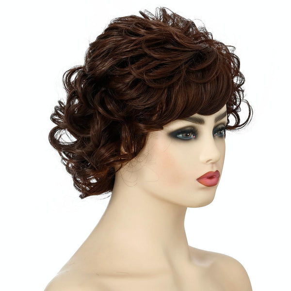 Ladies Fluffy Short Curved Head Set Chemical Fiber Wig(Brown)