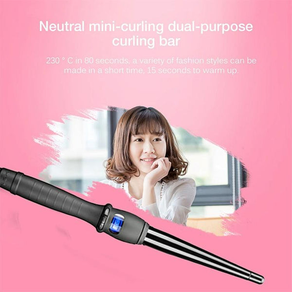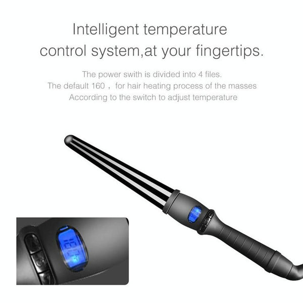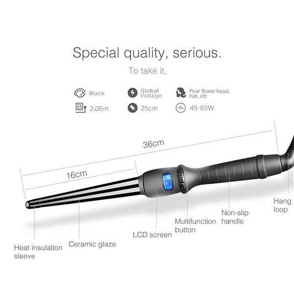 LCD Conical Curling Iron Single Tube Ceramic Glaze Pear Flower Cone, Size:25mm EU