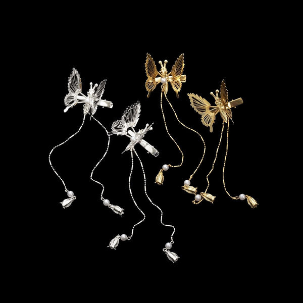 Moving Butterfly Wings Tassel Hair Clip Side Bangs Clip(Gold)