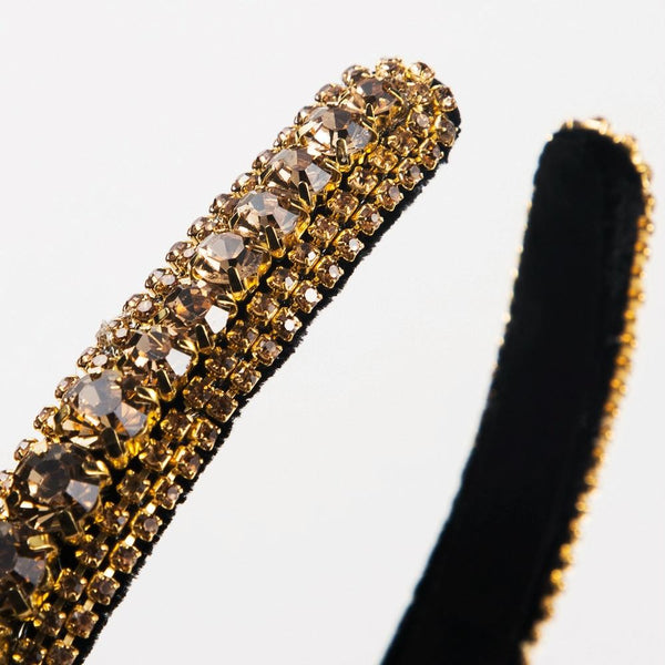 Multi-layer Glass Rhinestones Headband Full Rhinestones Gold Velvet Hairband(Coffee)