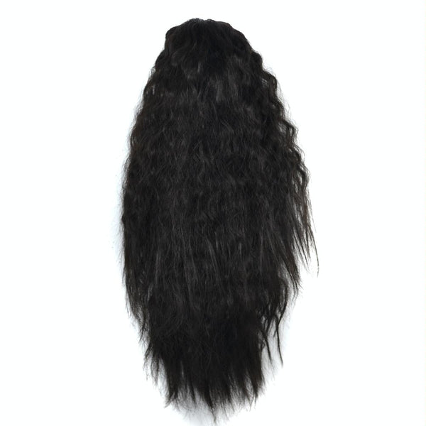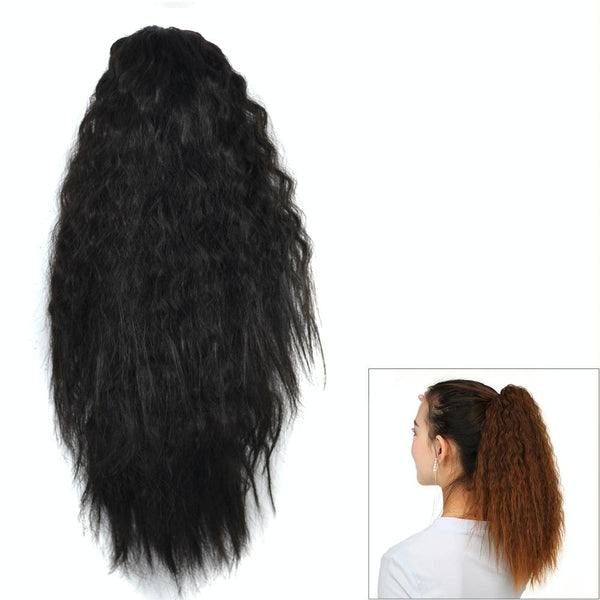 Natural Retro Short Curly Hair Clip-on Corn Blanching Horsetail Wig (Black)