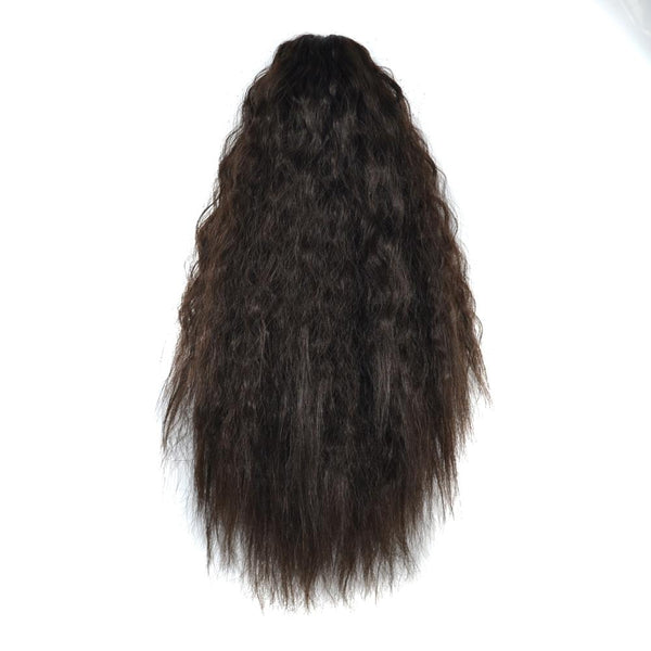 Natural Retro Short Curly Hair Clip-on Corn Blanching Horsetail Wig (Black Brown)