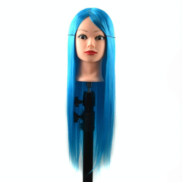 Practice Disc Hair Braided Mannequin Head Wig Styling Trimming Head Model(Sky Blue)