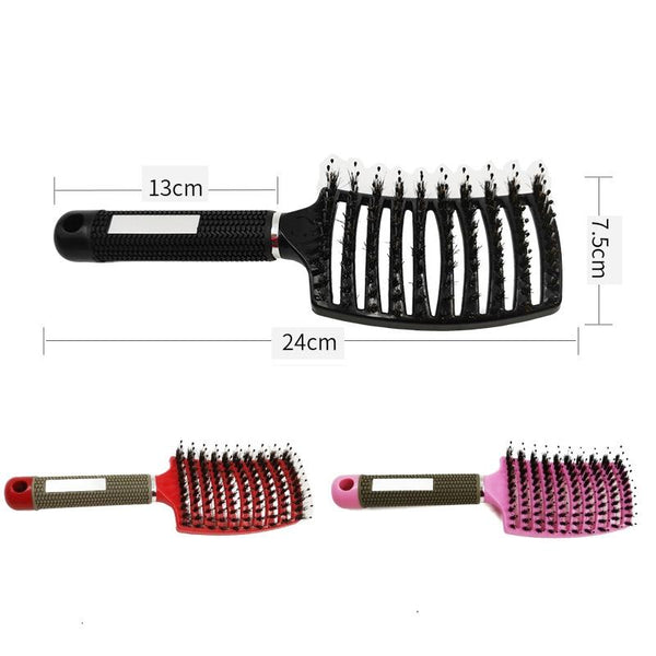 Retro Boar Bristles Hairdressing Big Curved Comb Curly Hair Massage Comb(Black)