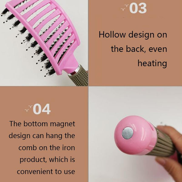 2. Two-in-one round-headed bristles comb the teeth without damaging the hair
