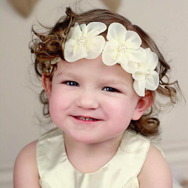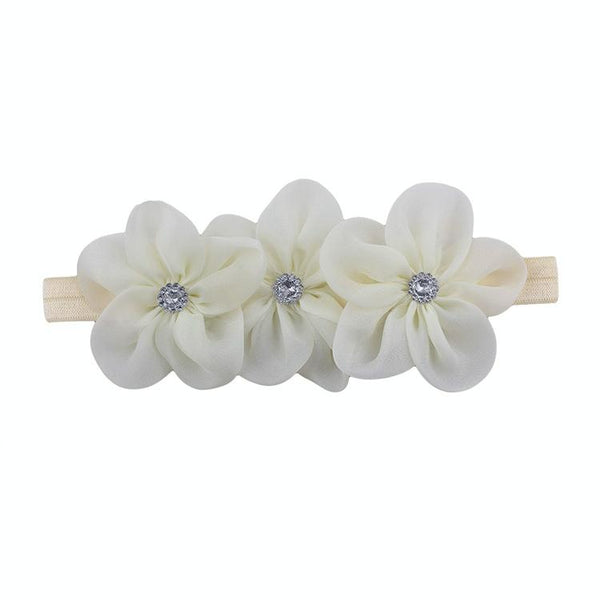 Ribbon Diamond Headband Newborn Hairband Girl Flower Head Children Hair Accessories(Creamy white)