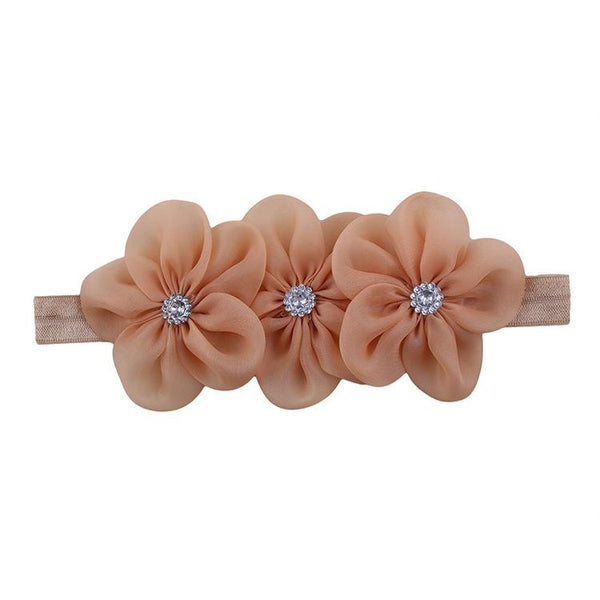 Ribbon Diamond Headband Newborn Hairband Girl Flower Head Children Hair Accessories(Khaki)