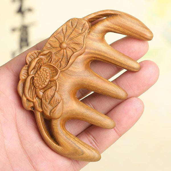 Sandalwood Carved Lotus Leaf Shape Handmade Comb Multifunctional Meridian Massage Thickening Health Comb(Massage Comb)