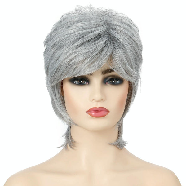 Short Hair Female Wigs Fluffy Fiber Set(Silver White)