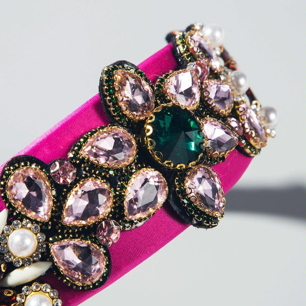 Stained Glass Inlaid Glass Diamond Pearl Headband(Yellow)