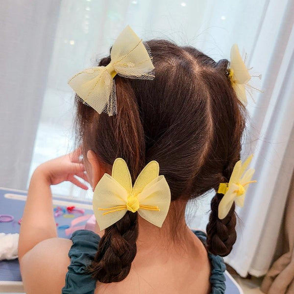 Sweet Coloured Bow Hair Clip Set Mesh Duckbill Clip Headpiece(Blue)