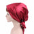 TJM-226 Ladies Satin Print Ribbon Bow Turban Hat Night Cap Silk Chemotherapy Hat Long Tail Braid Hat(Red Wine)
