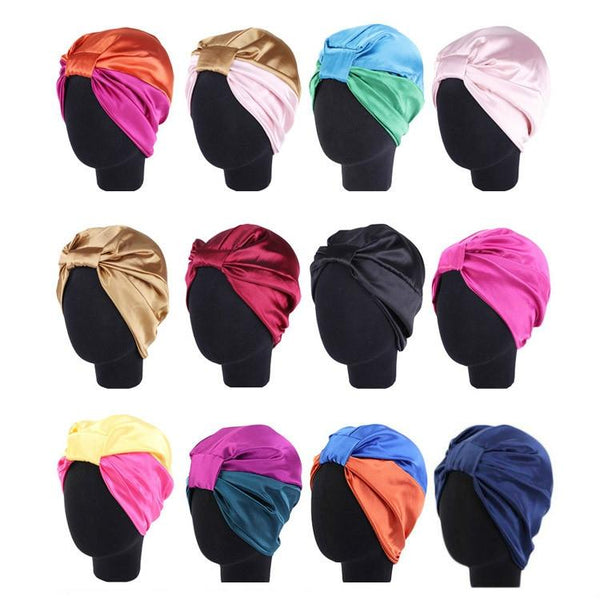 TJM-433 Double Layer Elastic Headscarf Hat Silk Night Cap Hair Care Cap Chemotherapy Hat, Size:M (56-58cm)(Black)