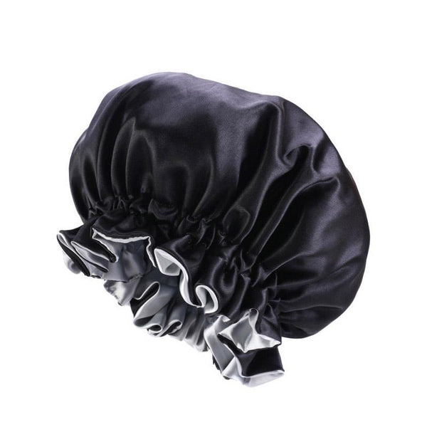 TJM-443A Double-Layer Satin Big Lace Night Hat Round Hat Chemotherapy Hat, Size: One Size Adjustable(Black)