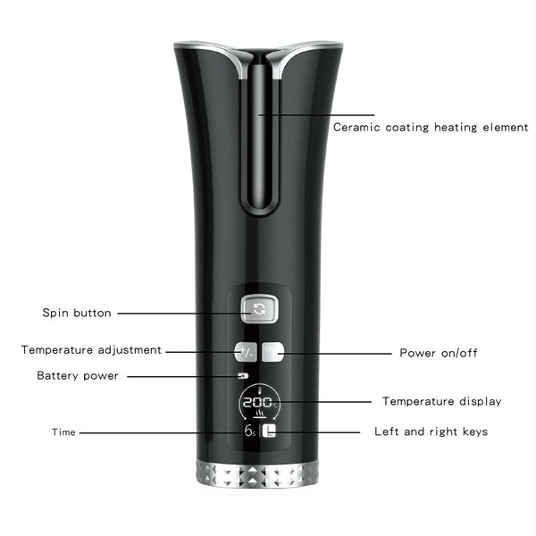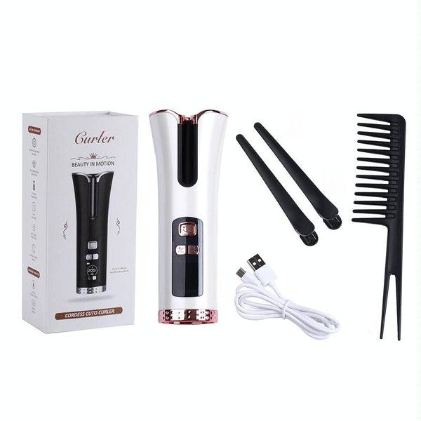 USB Charging Automatic Rotating Curling Iron Portable Wireless Travel Curling Iron(Pink)