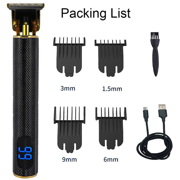 USB Rechargeable Digital Display Engraving Ceramic Knife Electric Hair Clipper(Digital Display Gold)