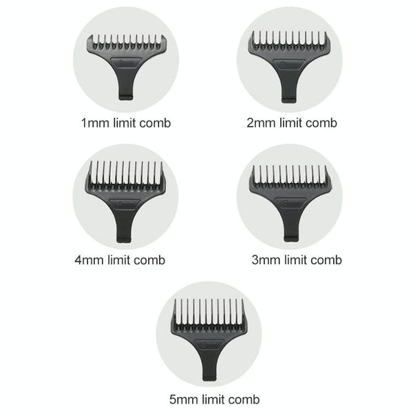 14. Accessories: USB charging cable x1, limit comb x5 (1/2/3/4/5mm), cutter head protective cover x1, cleaning brush x1, English manual x1