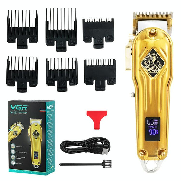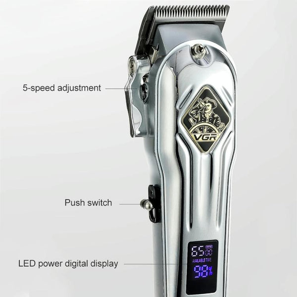VGR V-267 10W USB Metal Hair Clipper with LED Digital Display & 5 Gears Adjustment (Silver)