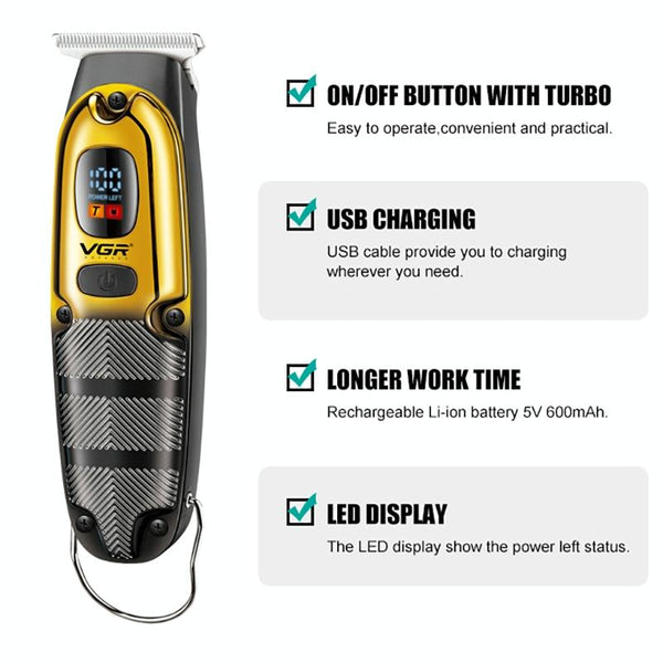 VGR V-981 5W USB LED Digital Display Electroplating Hair Clipper(Blue)