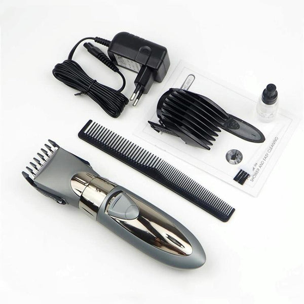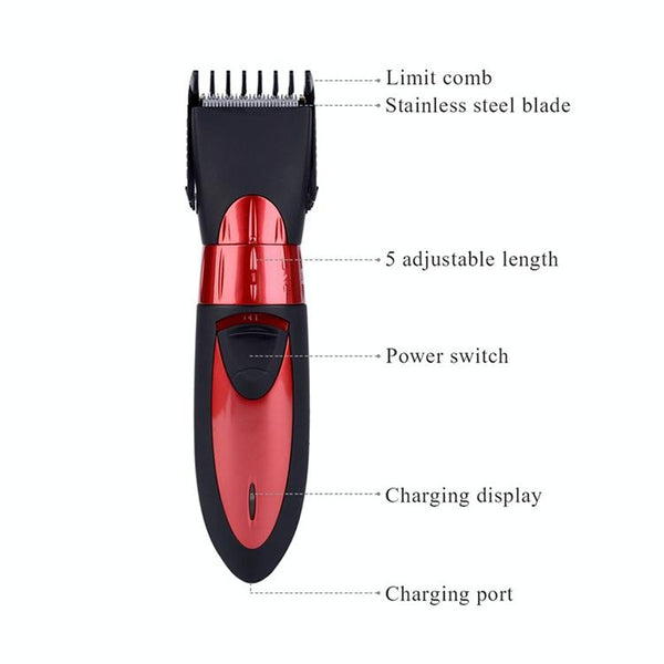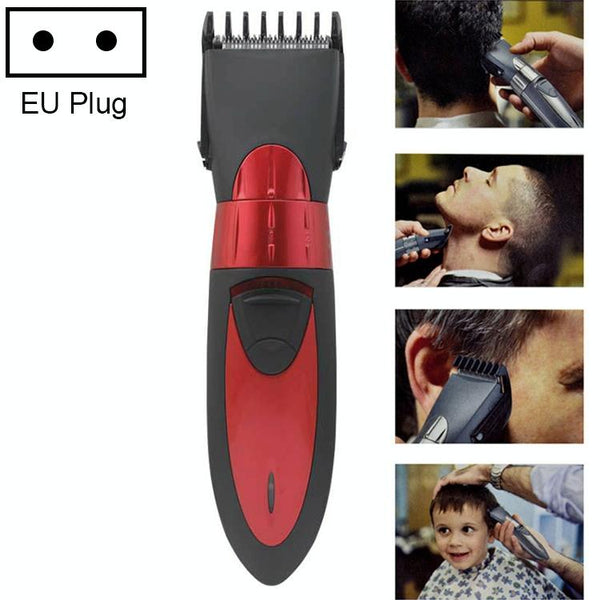 Waterproof Electric Hair Clipper Rechargeable Hair Trimmer Hair Cutting Machine Haircut Beard Trimer, EU Plug(Red)