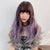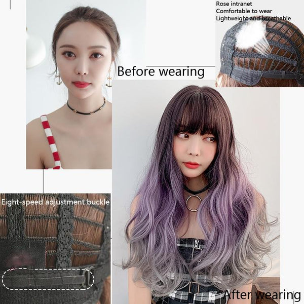 Wig Female Big Wave Gradient Color Long Curly Hair Chemical Fiber Full Bangs Wig Simulation Headgear(Smoked Purple Ash 65CM)
