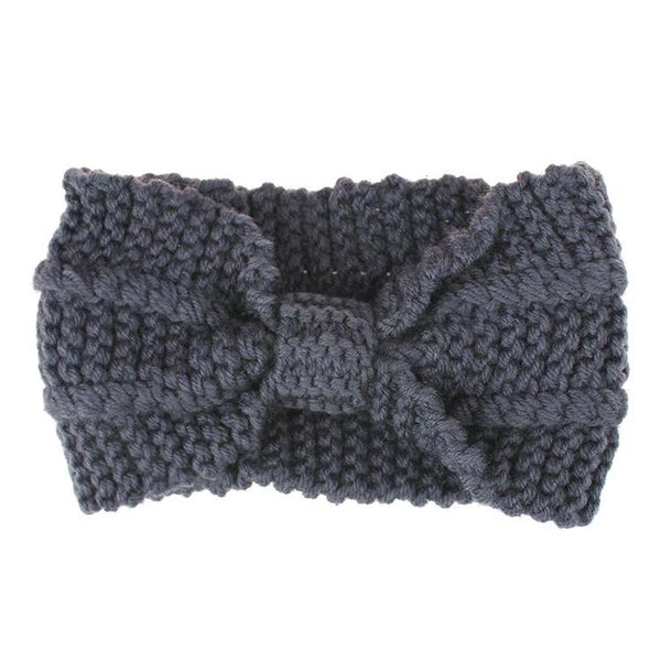 Winter Knitted Headband Turban Women Crochet Bow Wide Stretch Hairband Head Wrap(Dark Grey)