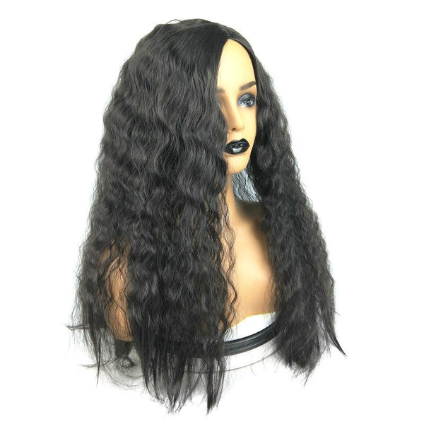 Women Chemical Fiber Middle Split Corn Perm Small Curly Long Wig(Black)
