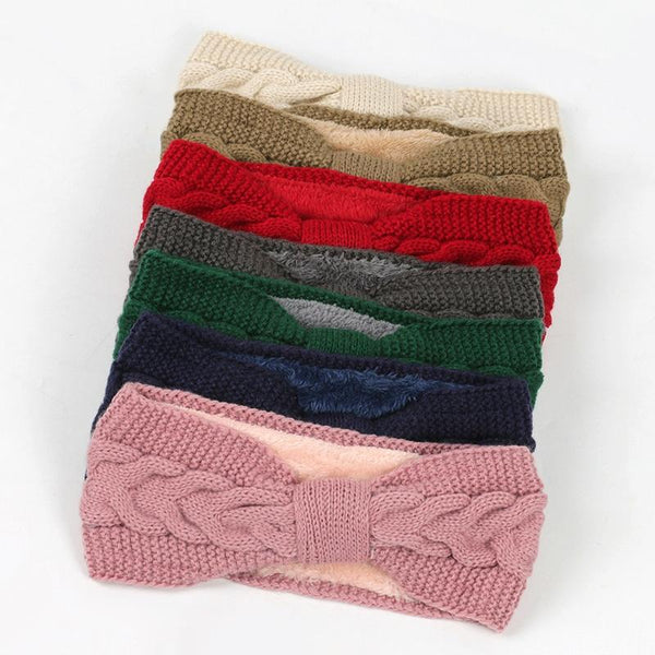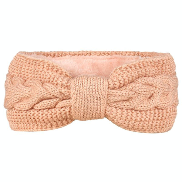 Women Fall Winter Fluffy Knitted Headbands Woolen Twist Sports Warm Ear Protectors Headcovers(Pink)
