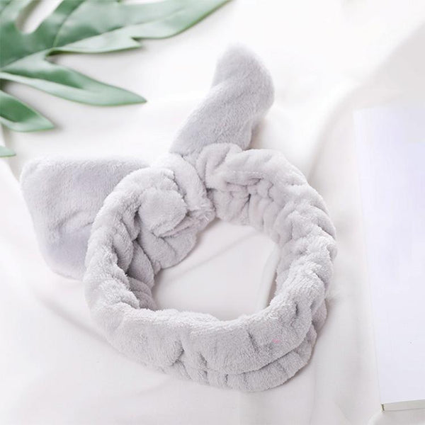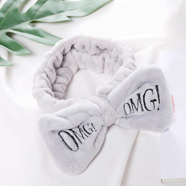 Women New Letter "OMG" Coral Fleece Soft Bow Headbands Cute Hair Holder Headwear Hair Accessories(Gray)