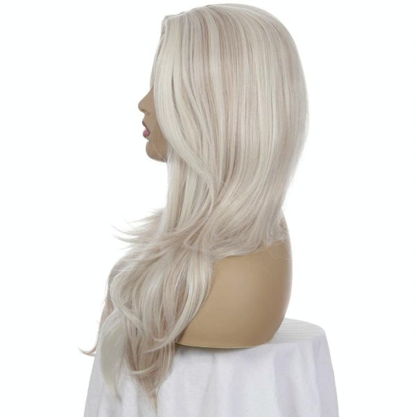 Women Split Wigs Long Curly Hair Synthetic Headgear(Light Gold + Brown)